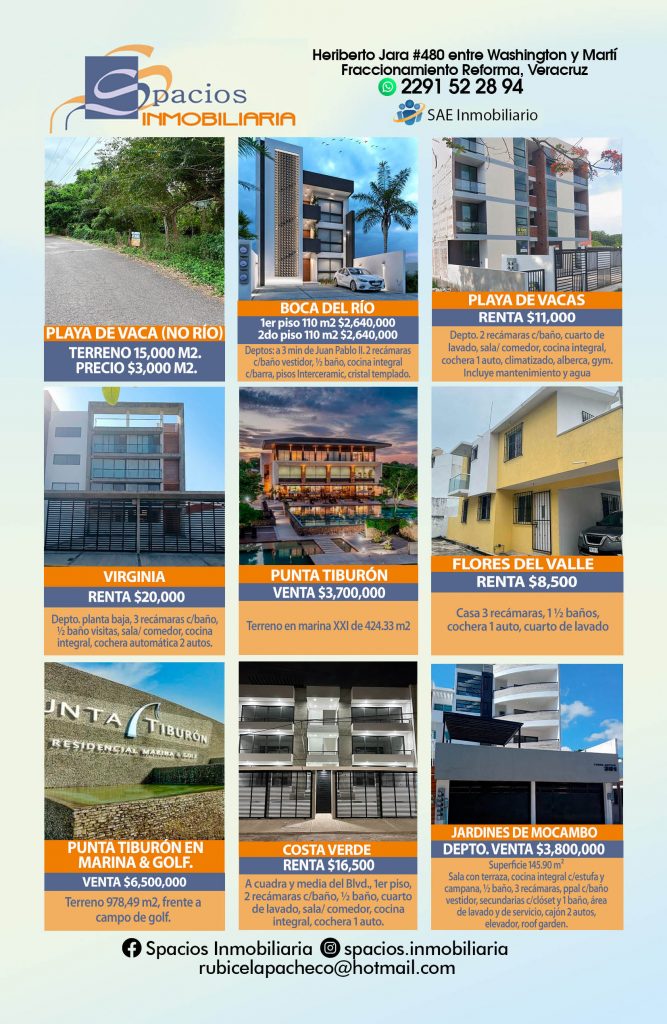 COSTA de Oro, conjunto de 12 departamentos distribuidos en 4 niveles, vigilancia y amenidades: salón de eventos, roof garden, jacuzzi y alberca, vista al mar. $19,500. Tel.2299270838, 2292598039