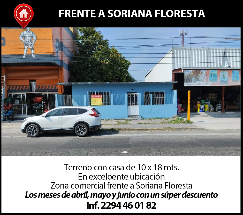 EXCELENTE local y excelente ubicación, 280 m2 en planta baja y 280 m2 de bodega en planta alta, en Juan Soto 400 entre Allende y Guerrero. $85,000 más IVA. Tel.2292657661
