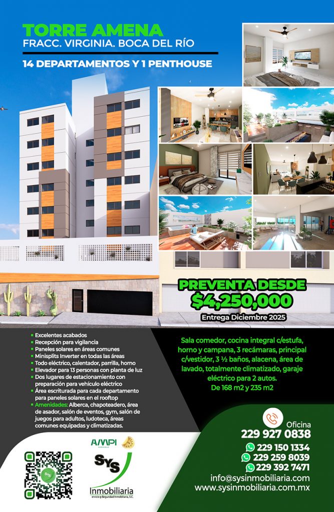 GREEN Tower Fracc. Virginia, cerca del estado de béisbol, c/minisplit inverter y paneles solares, 3 recámaras, ppal c/vestidor, 3 baños, cocina integral, área de lavado, garaje 2 autos, bodega. $37,000. Tel.2299270838, 2293300602
