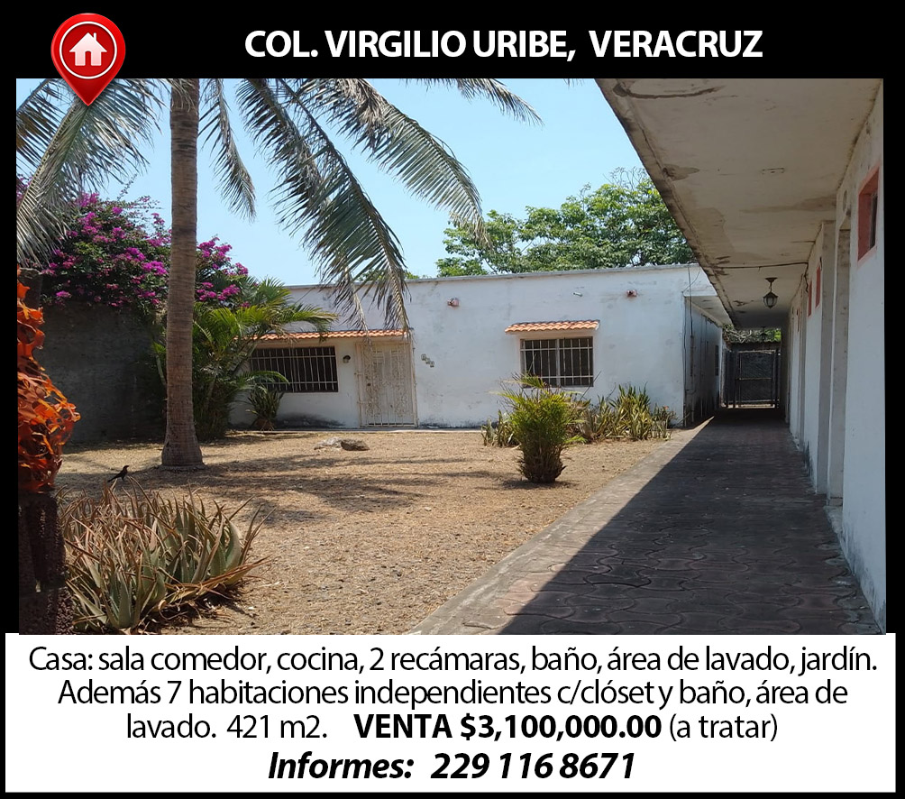 COL. ADALBERTO Tejeda, calle 6 ded enero, Boca del Río, Ver., 20 x 50 mts., al frente tiene una casa con sala, cocina, recamara, baño, que puede ser oficina. $15,000. Inf.9983140032