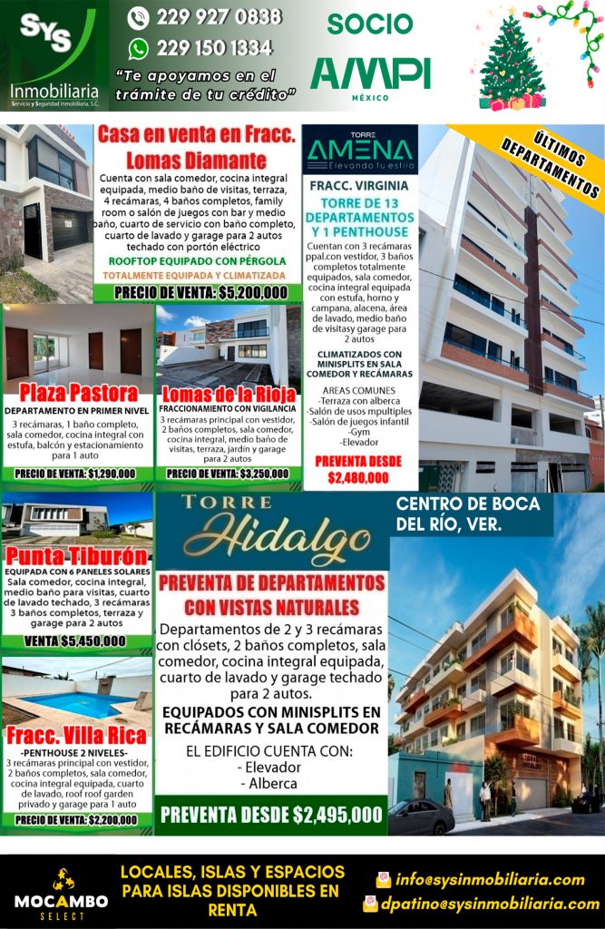JARDINES de Mocambo, amueblado, 3 recámaras c/cama matrimonial y minisplit, 2 baños, cocina integral c/refrigerador y barra, cuarto de lavado, balcón, garaje eléctrico 1 auto. $1,590,000. Tel.2292598039, 2299270838.