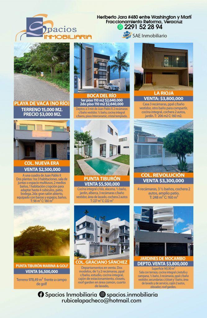 BOCA del Rio, Col. Adalberto Tejeda, 3 recámaras climatizadas c/clósets; ppal c/baño vestidor, otro baño para compartir, cocina integral, frigobar, isla multiusos, clóset de blancos, balcón, área de lavado, garaje eléctrico 2 autos, roof top con ½ baño, bodega, barra, asador y fregadero. $1,870,000. Tel.2299270838, 2292791607
