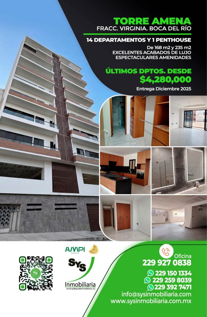 GREEN Tower Fracc. Virginia, cerca del estado de béisbol, c/minisplit inverter y paneles solares, 3 recámaras, ppal c/vestidor, 3 baños, cocina integral, área de lavado, garaje 2 autos, bodega. $37,000. Tel.2299270838, 2293300602