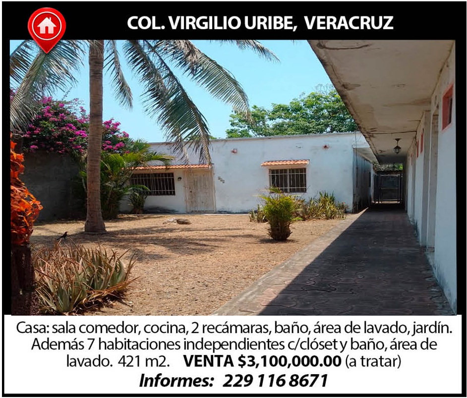 COL. ADALBERTO Tejeda, calle 6 ded enero, Boca del Río, Ver., 20 x 50 mts., al frente tiene una casa con sala, cocina, recamara, baño, que puede ser oficina. $15,000. Inf.9983140032