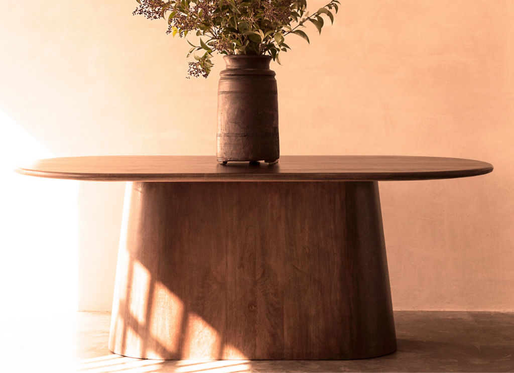 Las líneas curvas seguirán ganando terreno en la decoración de interiores 2026, ofreciendo una alternativa más amable a la rigidez geométrica. Como por ejemplo la Mesa de Comedor Ovalada Nogal, su forma evoca calma, movimiento y naturalidad, convirtiéndose en una de las claves para crear ambientes fluidos.