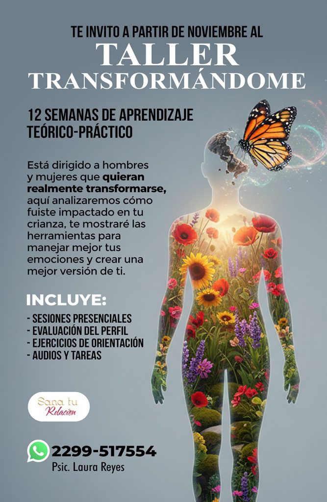 Si estas interesado en participar en mi próximo taller en Veracruz, mándame un mensaje por WhatsApp al número que aparece en el cintillo aquí debajo.